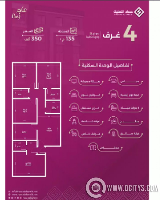 | مساحة الأرض | 135 متر |